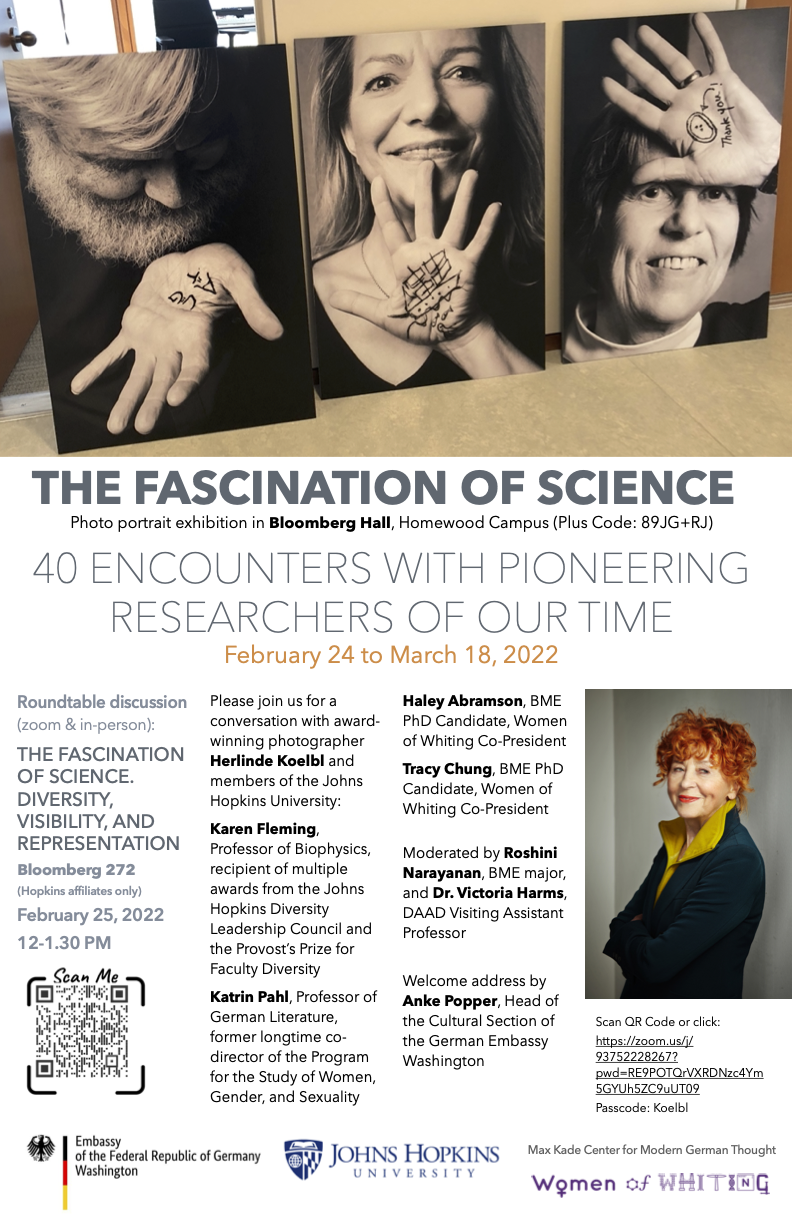 The Fascination of Science 40 Portraits of Pioneering Researchers in our Time — by Herlinde Koelbl On display in Bloomberg Center on Homewood Campus, February 23 – March 18, 2022